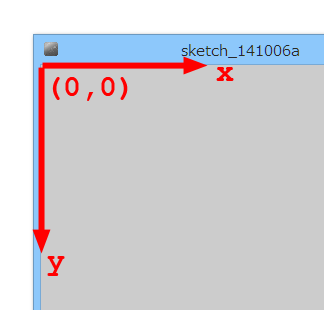 | ・ Processingの座標系 - グラフィックスの座標系は以下のとおり、y軸の±方向に注意する ![]() ・ グラフィックウィンドウのサイズを指定する