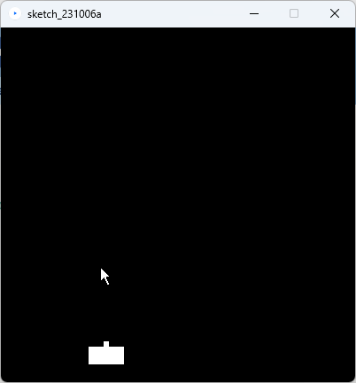 | 課題3のプログラムで、マウスボタンを押すと弾が発射されるように修正しなさい。 なお、弾は画面上に1個のみ存在するものとして、連射する必要はない。 実行の様子は下記の動画を参考にすること。 実行例の動画 |