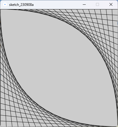 | 下図のように描画しなさい。 (画面のサイズは400x400, ラインは20pxごとに描画) ![]() |