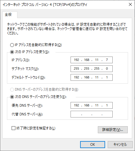| 無線LANルータのNAT(またはNAPT)機能を使えるようにする。 まず、「テストメンバー」を1人決める やりたいことは ・無線LANルータのNAT機能を使えるようにする ・テストメンバーのPCから、演習用PCにある test.html をブラウザで表示する です ・無線LANルータ(WSR-1800AX4S)の取扱説明書 --> PDFファイル(12.1.MB) ![]() (1) 無線LANルータのNAT機能を使えるようにする ・無線LANルータで設定するとき、「NAT」とは異なる名称で扱われている可能性がある ・演習用PCのWiFi機能は使用しない ・演習用PCのIPアドレスは、固定IPアドレス(下図)にする ![]() ・その他の設定は適宜設定すること (2) テストメンバーは WiFi(以下を参照)に接続して、インターネットが使える状態にする Buffalo無線LANルータのWiFiに接続するのではないので注意 ※PCのWiFi接続を「ゼルコバ」にしていると、正しく表示されない可能性があります その時は、下記のSSIDに接続しなおして試してください SSID fuip-JG2,fuip-JG3,fuip-JA2,fuip-JA3 など fuip-で始まるどれか PASS fuip123・・・9 (3) テストメンバーのPCのブラウザで、test.html を表示する ・テストメンバーのPCで、test.html をブラウザで表示できればOK ・テストメンバーのPCのブラウザで、http://163.145.136.???/test.html を指定する ・???は、自分のグループで設定している数値を設定すること <完了したら、先生を呼んでチェックしてもらうこと> |