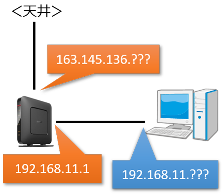 | (1) 下図のように接続し、無線LANルータを演習用PCから設定できるようにしなさい。 ・まず、無線LANルータを初期化すること(リセットスイッチは本体の底面) ・演習用PCのIPアドレスは自動取得にする ・無線LANルータのWAN側のIPアドレスを以下のように設定 グループ1 163.145.136.131 グループ2 163.145.136.132 グループ3 163.145.136.133 グループ4 163.145.136.134 グループ5 163.145.136.135 グループ6 163.145.136.136 グループ7 163.145.136.137 グループ8 163.145.136.138 グループ9 163.145.136.139 グループ10 163.145.136.140 グループ11 163.145.136.141 グループ12 163.145.136.142 ・その他、必要なWAN側の情報 (ネットマスク) 255.255.255.0、(DNSサーバー) 163.145.99.1、(ゲートウェイ) 163.145.136.254 ![]() (2) DHCPサーバー機能がONになっているかを確認しなさい。 OFFになっている場合、ONにしなさい。 (3) 演習用PCで IIS(Internet Information Services)を使えるようにしなさい。 ・ 第6回の解説資料を参考にする ・「test.html」は、今のグループの内容に修正すること ![]() ・演習用PCのブラウザにURL http://localhost/test.html を指定して、test.html が表示されることを確認する ・「test.html」を置く場所は「C:\inetpub\wwwroot」または デスクトップ のどちらでもよい ※今回は、無線LANルータの無線LAN機能(WiFi)は使用しません |