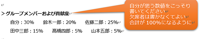 | 以下、実際にやってみて手順を示す簡単なマニュアルを作成しなさい(全員)。 (※注意)以下、chatGPTなどの生成系AIなどを利用するのは全て禁止します 手順および問いの回答をWordで作成(ファイル名は「自分の学籍番号_グループ番号2桁.docx」とする、 (5418099_03.docx とか)) 長くなりそうな場合は、ポイントを絞って内容を整理すること。 ・スマートホンではなく、自分のパソコンで調べること ・ネットに載っていた文章をそのままコピペしたものはダメ(評価しません)、自分の言葉にして説明すること 今回も グループ内のメンバー全員の「貢献度」を書いてください 前回と同様に自分が思う数値を書いてください 欠席者の名前は書く必要はありません ![]() |